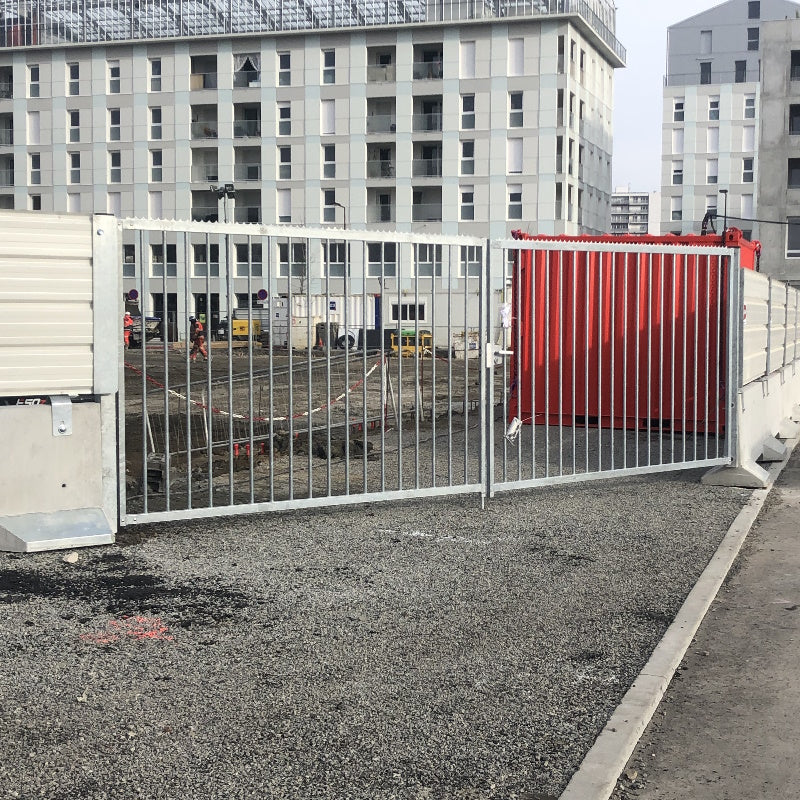 Sur un chantier exposé au public ou en zone urbaine, ce système réduit drastiquement les risques de vol ou de vandalisme, notamment en dehors des heures d'activité. Il limite les accès non autorisés et protège activement le matériel coûteux et les engins stockés. Le portail est également pourvu d’un système de verrouillage central avec serrure, garantissant une fermeture hermétique du site en l'absence des équipes.