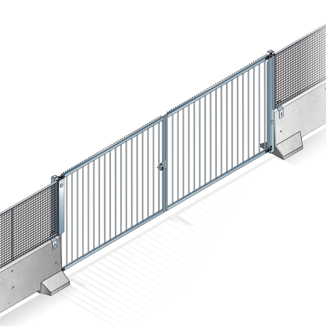 Le portail barreaudé pour clôture de chantier est spécifiquement conçu pour une installation sur blocs béton de type GBA. Il permet de créer un point d’accès hautement sécurisé au sein d’un dispositif de séparation ou de protection temporaire.