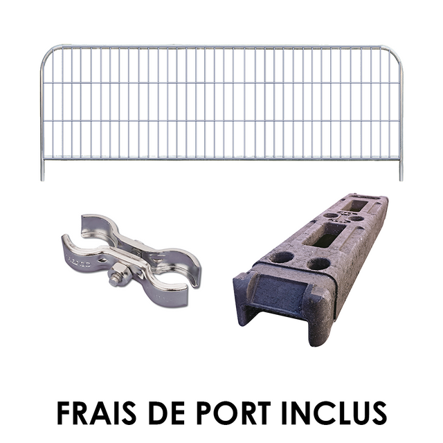 Le Pack 1m est la solution tout-en-un pour sécuriser vos chantiers. Il inclut tout le matériel compatible (barrières, socles, brides) pour un montage facile et rapide, sans outil spécifique.