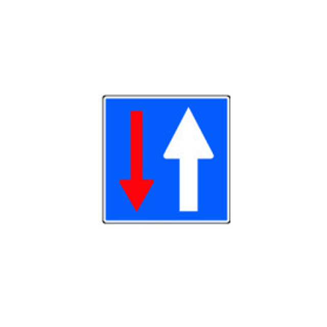 Le panneau CK18 est le pendant temporaire du panneau permanent C18. Il se reconnaît à sa forme carrée à fond bleu arborant deux flèches : une blanche (prioritaire) et une rouge (sens inverse). Dans sa conception Gamme CK, il est conçu pour subir les contraintes réelles du terrain : chocs lors du transport, projections de bitume et intempéries. L'utilisation de l'acier galvanisé monobloc assure une planéité parfaite du film rétroréfléchissant, évitant les reflets parasites qui pourraient induire l'automobiliste en erreur.