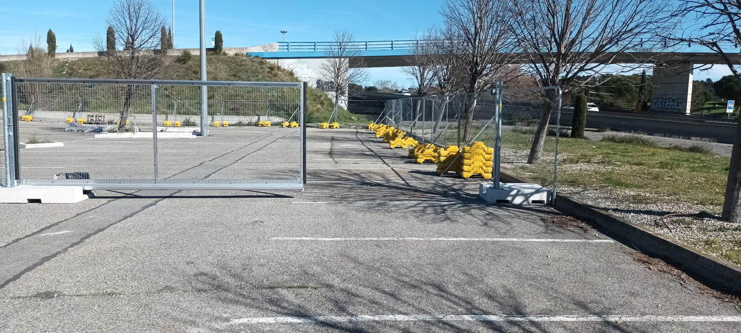 Ce dispositif crée une barrière visuelle et physique cohérente avec vos clôtures mobiles de haute sécurité.
