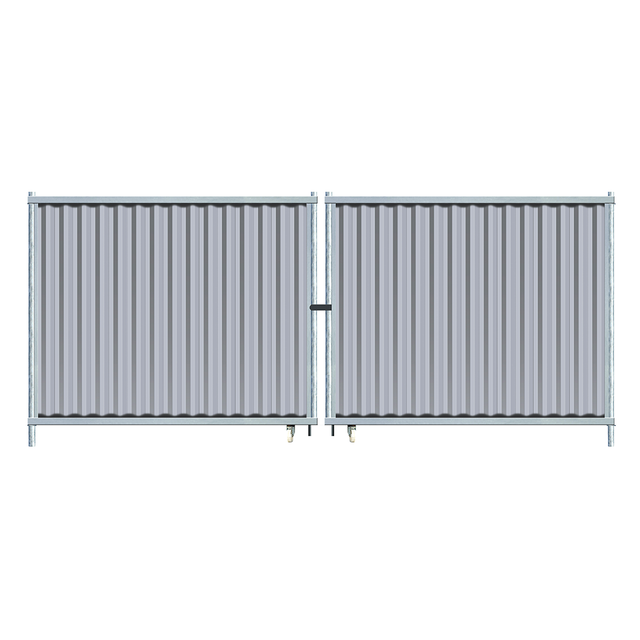 The Blockade™ Vehicle Gate provides vehicles with safe access to the construction site. The Blockade™ Vehicle Gate consists of 2 gate doors of 2.2m each with castors for easy opening and closing. Each gate door can be opened or closed independently of the other. Both gate doors have a locking bar for added security. The vehicle gate can be easily locked with a chain and padlock (not included in the price) and is available in any RAL colour.